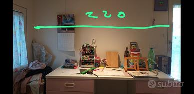 Vendesi come da foto scrivania Ikea con relative cassettiere, attaccapanni , mensola, lampadario abbinato, cesta.........