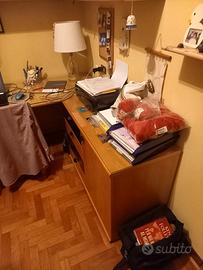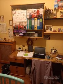 cameretta in legno a ponte, con letto doppio, scrivania, armadio, vetrina, dimensione scrivania 2080 x 600 x h 730 - dimensione scrivania 1040 x 430 x h 730 - armadio dim. 2970 x 600 x h 2600 - letto doppio dim. 2050 x 850 - vetrina dim. 1040 x 320 x x 990