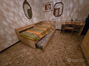 Come da foto, in ottime condizioni, 1 letto singolo con possibilità di estrarre un secondo letto, armadio e scrivania. Vendo a €200. Smontaggio e trasporto a carico dell'acquirente. Si trova in provincia di Bergamo.