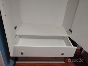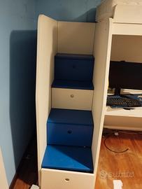 cameretta in legno listellare laccata bianca e blu in buone condizioni. Compreso di materasso in discrete condizioni