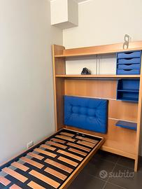 Vendo cameretta in legno composta da scrivania (doppia) e armadio con letto integrato scorrevole. Misure scrivania: 136cm larghezza x 204cm altezza Misure mobile con letto: 151.5cm x 198cm altezza. Smontaggio e ritiro a carico dell’acquirente.