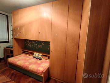Vendo cameretta in rovere massello tinta miele con inserti verde salvia a ponte così composta:
