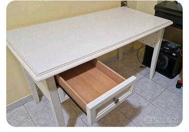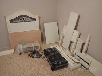 cameretta in ottima stato letto in doghe con materasso nuovo scrivania a due cassetti mobiletto a due ante vetrato due piani