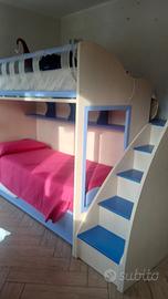 cameretta composta da due letti e uno a scomparto con scalette e pedana calpestabile