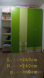 Letto a castello, (Mondo Camerette) mensole e armadio tutto in ottimo stato. doghe letto inferiore in legno, cassettoni ampi con ruote. misure in foto. possibilità di inviare ulteriori foto e dettagli. smontaggio e trasporto a cura acquirente. disponibile da dicembre. trattativa in privato. solo realmente interessati.