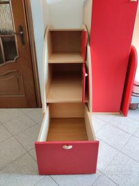- Scaletta contenitore, con due ante e cassettone, non unita alla struttura e orientabile come si preferisce