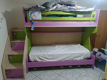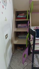 cameretta letto a castello con armadio ante scorrevoli, scrivania e cassettiera