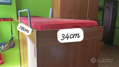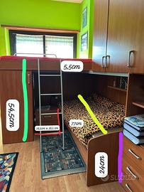 Vendo cameretta letto a castello con comodino. Misure segnate in foto. Due colori disponibili, marrone chiaro e arancione. Ritiro e smontaggio a carico dell’acquirente a Val della Torre previo accordi.