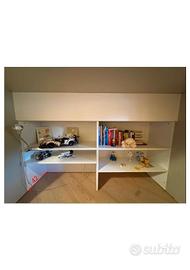 contenitiva a due cassetti, comodino sopra a tre cassetti, comodolino sotto con ruote a due cassetti(materasso sopra no) scaffalatura sottoponte bianca , vendo per cambio arredamento già smontata, senza segni di usura ,perfetta. ritiro a carico dell acquirente