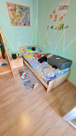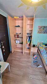 Vendo camera con letto singolo no materasso, comodino, armadio 3 ante . Dimensioni: Letto 1.96x90 h 70 Comodino 46x46 h40 Armadio 1.36x56 h230 Formula vista piaciuta. Difetti: adesivi attaccati dal mio bambino e danno nel armadio fianco esterno sinistro. (Allego foto) No spedisco! no porto da nessuna parte! chi la vuole viene e se la porta a casa. prezzo trattabile