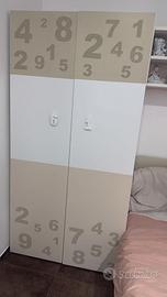 1 armadio 1 mt + 1 armadio da 50 cm. Con 3 cassetti, 1 letto, cubi e mensole