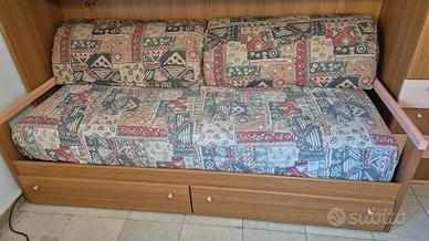 Mobili da smontare e ritirare in loco. Materiale:Legno Letto+2cassettoni 90x200cm Armadio+cassetti 56x200x89cm totale Armadietti+Vetrine 56x95,50x44cm ciascuno