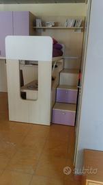 Vendo cameretta disponibile subito laminato faggio e lilla con inserti in bianco L.4 metri circa h.260. La cameretta e' nuova ( rimanenza di negozio che ha cessato l' attivita').N.B. dalla composizione sono esclusi letto sotto e poltroncina lilla . Cameretta con 1 letto !