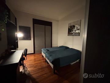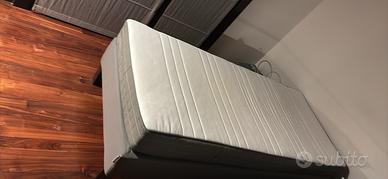 2 letti singoli con doghe di legno e materasso, piedini in legno e rivestimento laterale in tessuto grigio Ikea 90x200. Scrivania e libreria grigia laccata marca Moretti. Lampada stelo Ikea. Vendo anche separati.