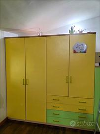 Vendo cameretta gialla e verde, in ottime condizioni. Due letti, ampio armadio e cassettiera.