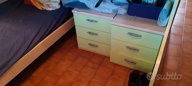 Buongiorno, vendo cameretta a soppalco con due letti, due comodini e cassettoni come scala per salire al letto superiore. Ottimo stato in quanto usata pochissimo.