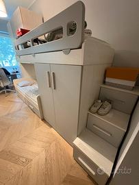 Cameretta Mondo e convenienza , usata pochissimo , colore grigio chiaro e legno bianco , da smontare e ritirare, possibile aggiunta di scrivania correlata .