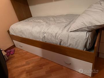 Cameretta con letto singolo e cassettone contenitore al di sotto del letto lunghezza 2,4 metri, come nuova poco utilizzata