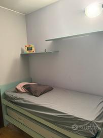 Libreria, scrivania, due letti scorrevoli, armadio a quattro ante piu i vari scaffali. Camera fabbricata da artigiano.