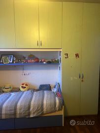 Cameretta a ponte verde acqua e blu, vendibile senza letto o con, più mensola in buono stato, buon legno e struttura, capiente e in buone condizioni, prezzo trattabile