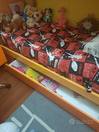 Cameretta con letto a castello , due reti con doghe in legno e due materassi( una rete con schienale regolabile manualmente).