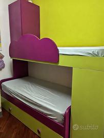 Vendo cameretta per cambio casa, completa escluso materassi. Si compone di 2 letti e 2 cassettoni in basso, armadio a 2 ante più scale contenitori , come in foto! Smontaggio e ritiro a carico dell’acquirente . Disponibile dal 20 marzo