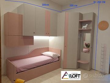 Cameretta MISTRAL angolare moderna ESCLUSO LETTO CONTENITORE CON CABINA ARMADIO ANGOLO
