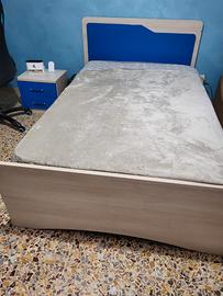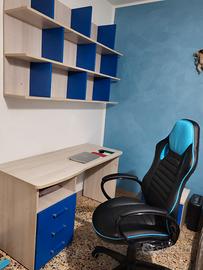 CAMERETTA 4 ANTE BATTENTI 4 CASSETTI CON SCRIVANIA CON CASSETTIERA A SINISTRA L.183 P.60 H.245 SENZA LETTO COLORE OLMO CHIARO/ BLU .