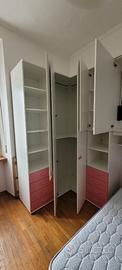 Vendo grande cameretta in ottimo stato, (vedere fotografie), completa, ottime rifiniture. Altezza mobili 2.62, larghezza totale 354 cm. Il tutto è modulare e componibile a piacimento. L’armadio a sinistra della foto è largo 166 cm, profondità 59 cm. Disponibile per sopralluoghi. Considerate le dimensioni, il numero di mobili e la qualità, la vendo a 500 euro. La cameretta è già smontata, il trasporto è a carico dell’acquirente. Il sito è in Aosta.