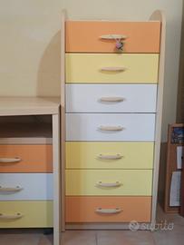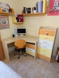 Vendo cameretta mondo convenienza, compresa di letto e materasso, armadio a ponte, scrivania con sedia e cubo porta oggetti, comodino, cassettiera e mensole.