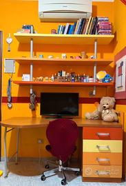 Cameretta in perfette condizioni, incluse ci sono 4 piccole mensole lunghe 57 cm e larghe 12 cm; compreso anche lampadario a forma di fiore con farfalline pendenti.