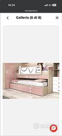 Vendo letto a monoblocco come da foto. È composto da letto inferiore estraibile, 6 cassetti, 2 scrivanie estraibili e una scaletta. É bianco e rosa. Acquistato 2 anni fa ma utilizzato solamente 2 mesi per l’estate. Il mobile è già smontato e si trova ad Ardea. Prezzo € 270, pagato €1000. colore bianca / rosa