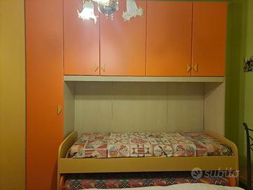 cameretta a ponte con due letti e materassi