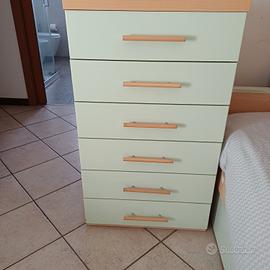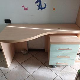 cameretta ponte, completa di scrivania con mobiletto, settimanale e libreria.