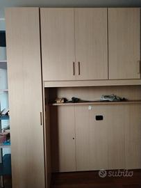 Cameretta a ponte color frassino ottime condizioni , con 4 cassetti lilla e bluette , da smontare a cura dell'acquirente , no mobile grandi negozi ma fatta da un Mobiliere