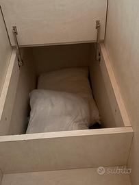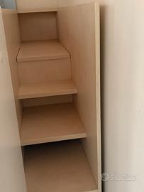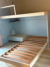 Cameretta Moretti Compact, 2 letti, con gavone contenitore, scaletta comoda, ampio comodino con ruote, scrivania. Da sostituire qualche doga del letto inferiore.