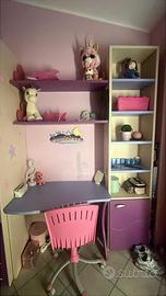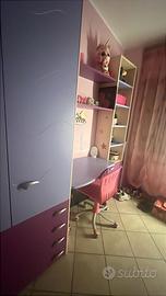 Vendesi bellissima cameretta per bambina/ragazza, completa. Perfetta per ottimizzare gli spazi in stanze non troppo grandi (9mq). Letto singolo robusto, con 4 cassettiere sottostanti e armadio 5 ante superiori sopra il letto. Scrivania sagomata e sedia più mensole. Armadio a 2 ante + 4 cassetti. Libreria a colonna con mensole a vista e un vano chiuso. Prezzo trattabile.