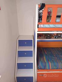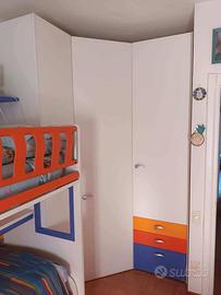 La cameretta consta di 2 letti a castello (compresi di materassi), armadio e cabina armadio, scaletta di accesso al letto superiore con cassetti negli scalini, scrivania con pensili e mensole e tanto altro, come da foto, tutto in OTTIMO STATO!