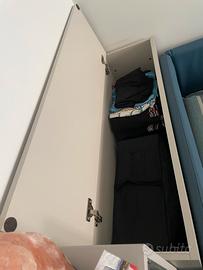 Cameretta Moretti Compact anno 2023: 800€ tutto Letto con sponde (ingombro totale 104x207) + secondo letto estraibile con rotelle: 400€ 2 materassi (90x190 altezza 20cm): 30€ l’uno 1 libreria con 4 ripiani, 2 cassetti e 2 sportelli (85x30 altezza 249cm): 300€ 1 mobile contenitore (dietro la sponda - testiera) 104x30 altezza 96cm): 250€