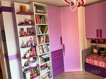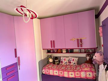 Cameretta con divano letto e secondo letto a scomparsa con reti e materasso, e cabina armadio con specchio interno