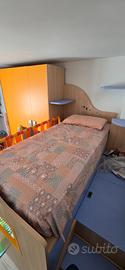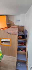 Cameretta a ponte del 2021, laccata, ditta moretti compact in perfetto stato d'uso. C'è compresa anche scrivania. I materassi non sono compresi nella vendita. Le misure sono 350 lato letto per 210 lato scalini per 255 altezza, la scaletta e il calpestio sono contenitivi con scalini e botole ad apertura, sono comprese 6 mensole. Letto inferiore e cassettiera entrambi su ruote. Si vende causa crescita e rinnovo mobilio, il tutto è da concludere nell'ultima settimana di aprile. Smontaggio e trasporto a carico dell'acquirente, posso sicuramente aiutare all'occorrenza. Nessuna perdita di tempo, massima serietà. È un ottimo prodotto in perfette condizioni. Ritiro in zona Vimodrone. Grazie per l'attenzione.