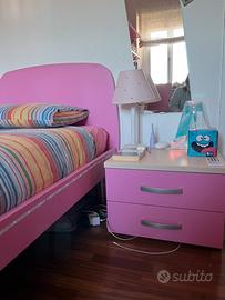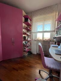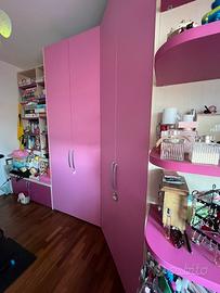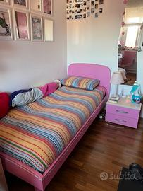 Cameretta composta da letto con materasso comodino scrivania sedia libreria armadio a 4 ante con cabina angolare, mobile libreria. La cameretta e’ tenuta bene la vendo per cambiare arredamento. Smontaggio e ritiro a carico dell’acquirente