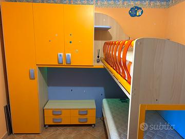 Vendo cameretta a castello moretti compact in ottime condizioni completa, armadio, comodino e 2 letti