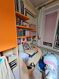 bellissima e nuovissima cameretta moretti compact 6 pezzi, letto armadi e scrivania con mensole.
