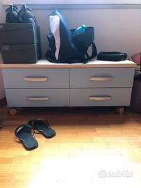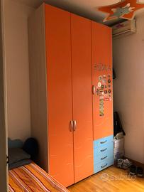 Vendo cameretta moretti composta da armadio tre ante con 2 cassettiere, letto singolo con materasso, scrivania con libreria e cassettiera, cassettiera bassa. Regalo sedia da scrivania e lampadario a stella di colori abbinati alla cameretta. Ritiro a vostro carico.