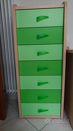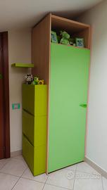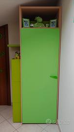Vendo cameretta completa MORETTI COMPACT comprensiva di: Letto doppio (materassi compresi) L.200 P.90 H.74 ArmadioL.60 P.60 H.194 SettiminoL.50 P.42 H.123 ScrivaniaL.150 P.62 H.78 +2 sedie +3 mensole:L.150 L.100 L.100 tutte P.30