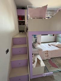 Ottima condizioni se interessati chiedo tempo per snontarla 2 letti con scrovania / libreria / armadio Colere lilla risa legno neige