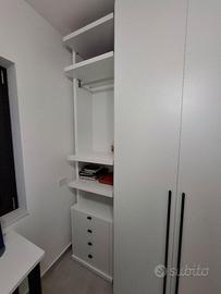 si vede causa trasferimento una cameretta moretti nuova composta da armadio (3 ante da 45 cm + 1 anta da 60 cm + cabina a giorno con cassetti 60 cm, totale 2 metri e 55 ), scrivania, letto compreso di materasso nuovo e comodino.
