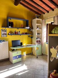Cameretta Moretti compact come nuova, la camera ha due letti, quello alto singolo mentre quello basso è una piazza e mezzo, con materassi nuovi in lattice. Completa di grande armadio a muro angolare, scrivania, mensole e quello che è in foto. Per qualsiasi informazione o per altre foto contattare il numero:3669300271 Federica