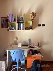 due mensole da un metro l’una e cubbotti 90x65cm. scrivania con tre cassetti 120x60 o 40